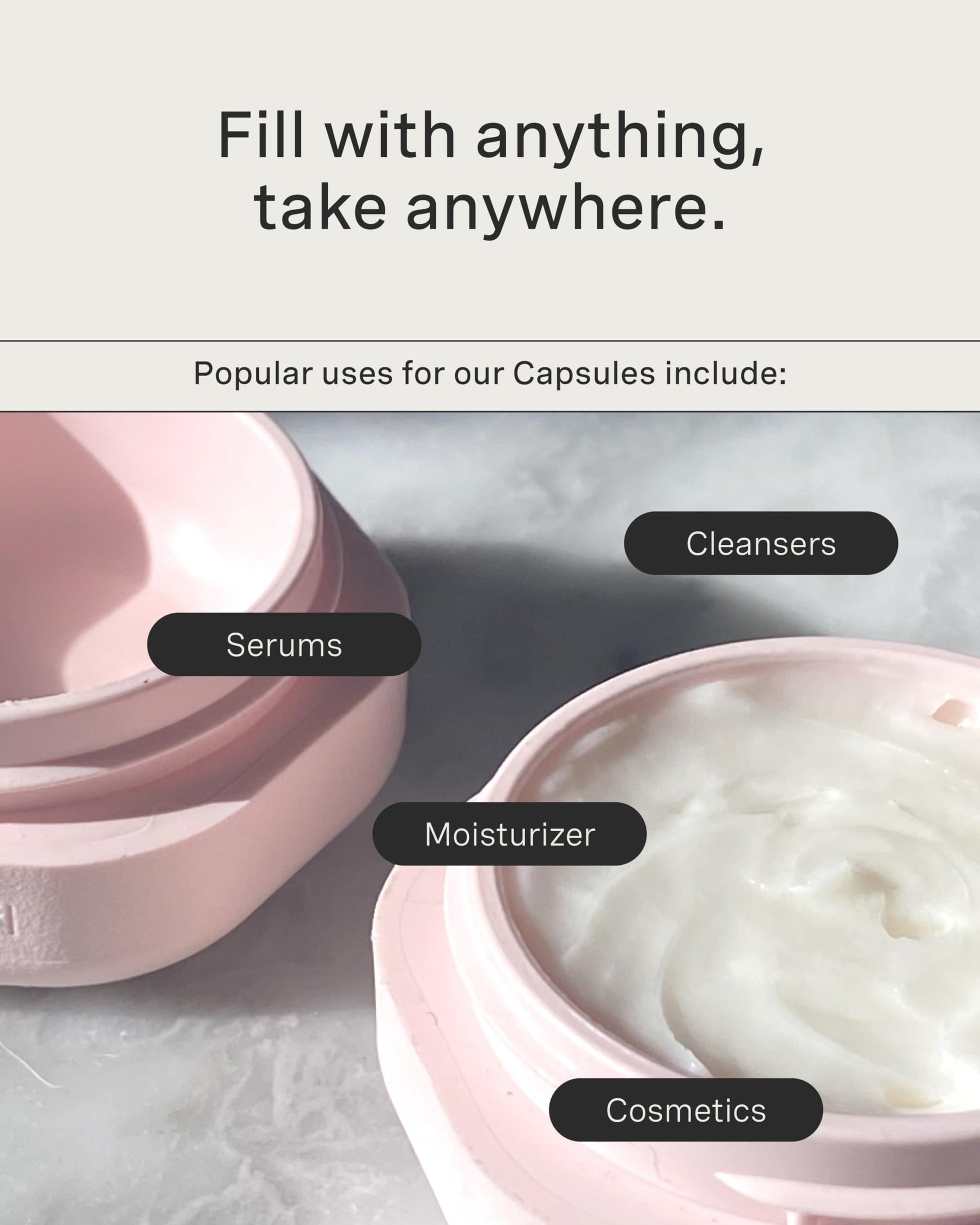 - TSA-COMPLIANT & 100% LEAKPROOF: Rest easy while traveling with our modular travel capsules. They are not only TSA-compliant but also 100% leakproof, ensuring your liquids and essentials stay securely contained. Pack these carry on reusable containers and say goodbye to messy spills on your journeys!