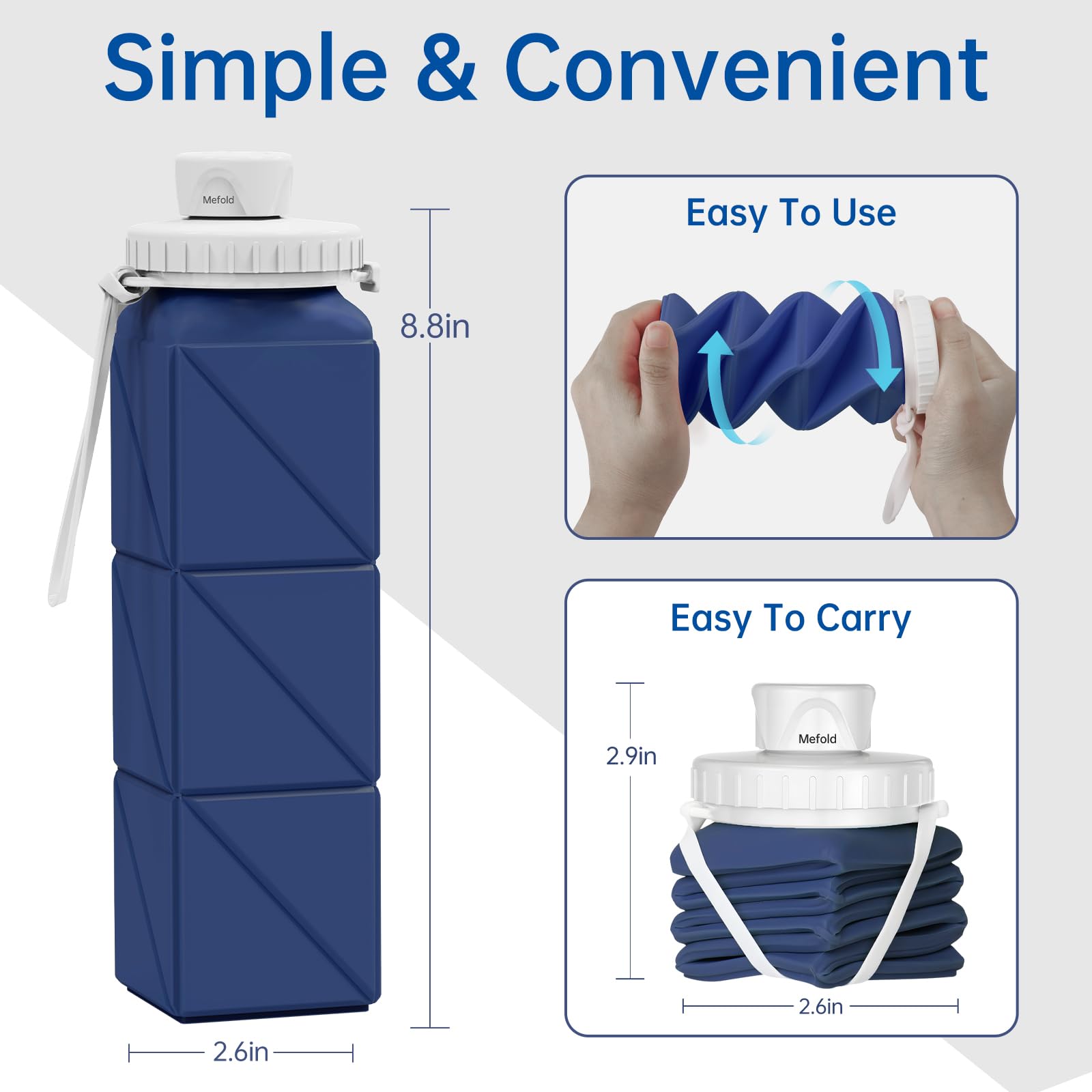- 【Lightweight and Collapsible Water Bottle】This 21oz bottle collapses down to min size.Foldable water bottle can reserve 610ml liquid with less 150g in weight,convenient to carry.The lightweight collapsible water bottle is portable,which can be folded down to one-third of the size after drinking water,saving space up to 70%.❤Our silicone water bottle leakproof and soft but which makes it impact-resistant and super durable for sports, gym, camping, Cycling,Climbing,Running,and travel.