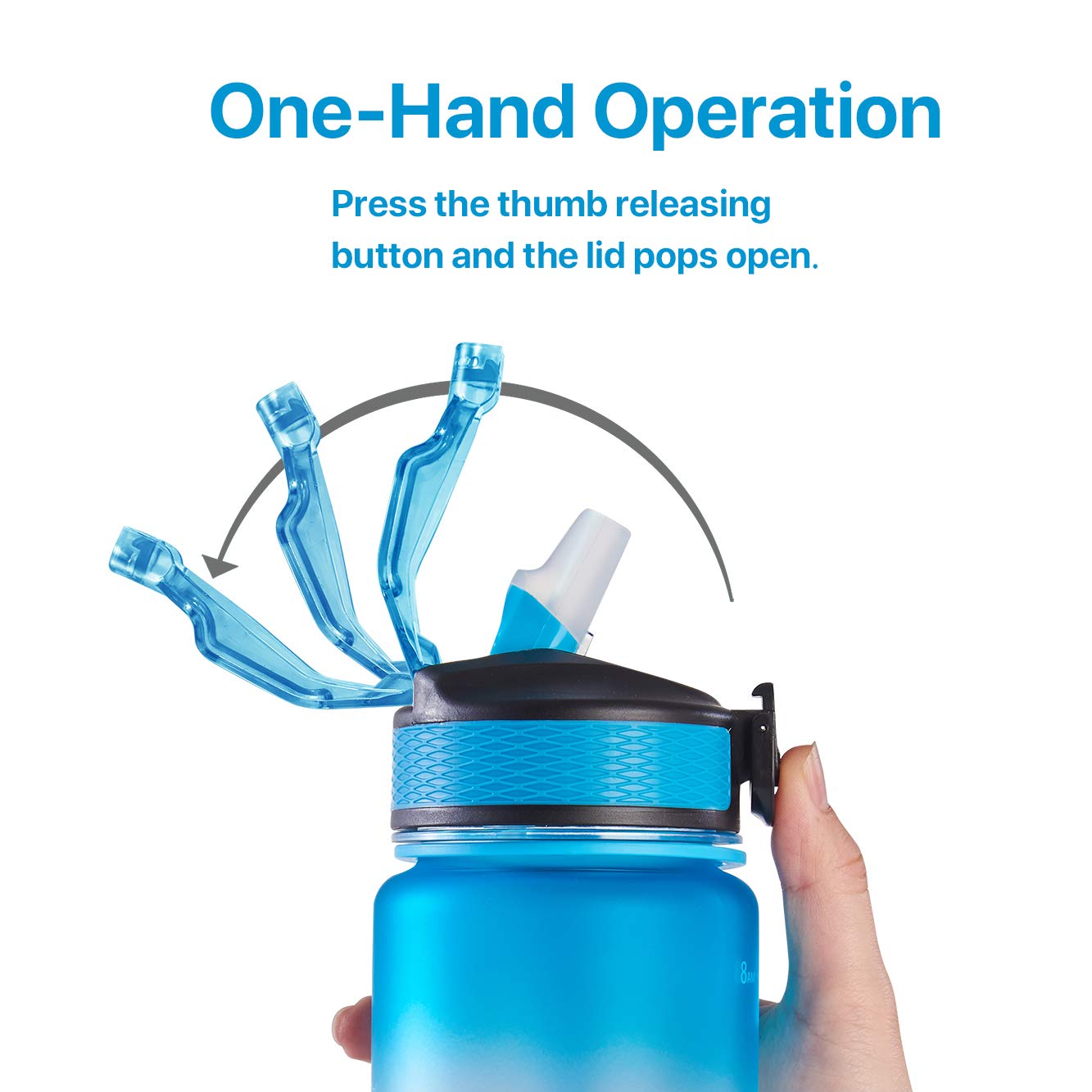 - Function Design: Opening the lock has a silicone nozzle with a straw inside to prevent turbulent water flow. Wide-mouth opening is easy to fill with ice cubes and fruits, also for efficient cleaning. The Water Bottle with straw also fits in a car cup holder.