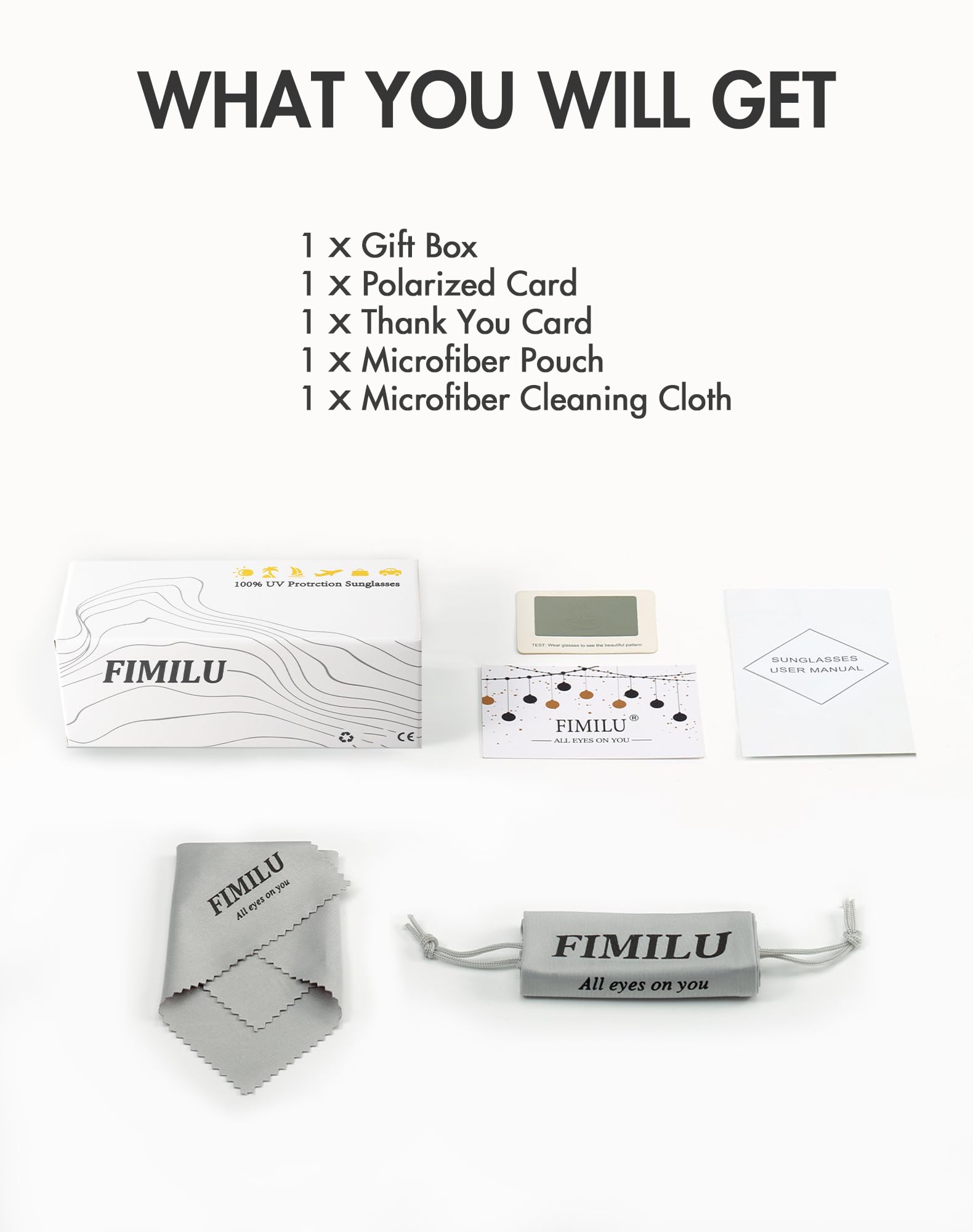 - POLARIZED & UV400 LENS: FIMILU polarized sunglasses not only protect against glare and restore true colors without any distortion or distortion to color-saturated images, but they also block UVA and UVB radiation, making them the perfect choice when you're out every day.