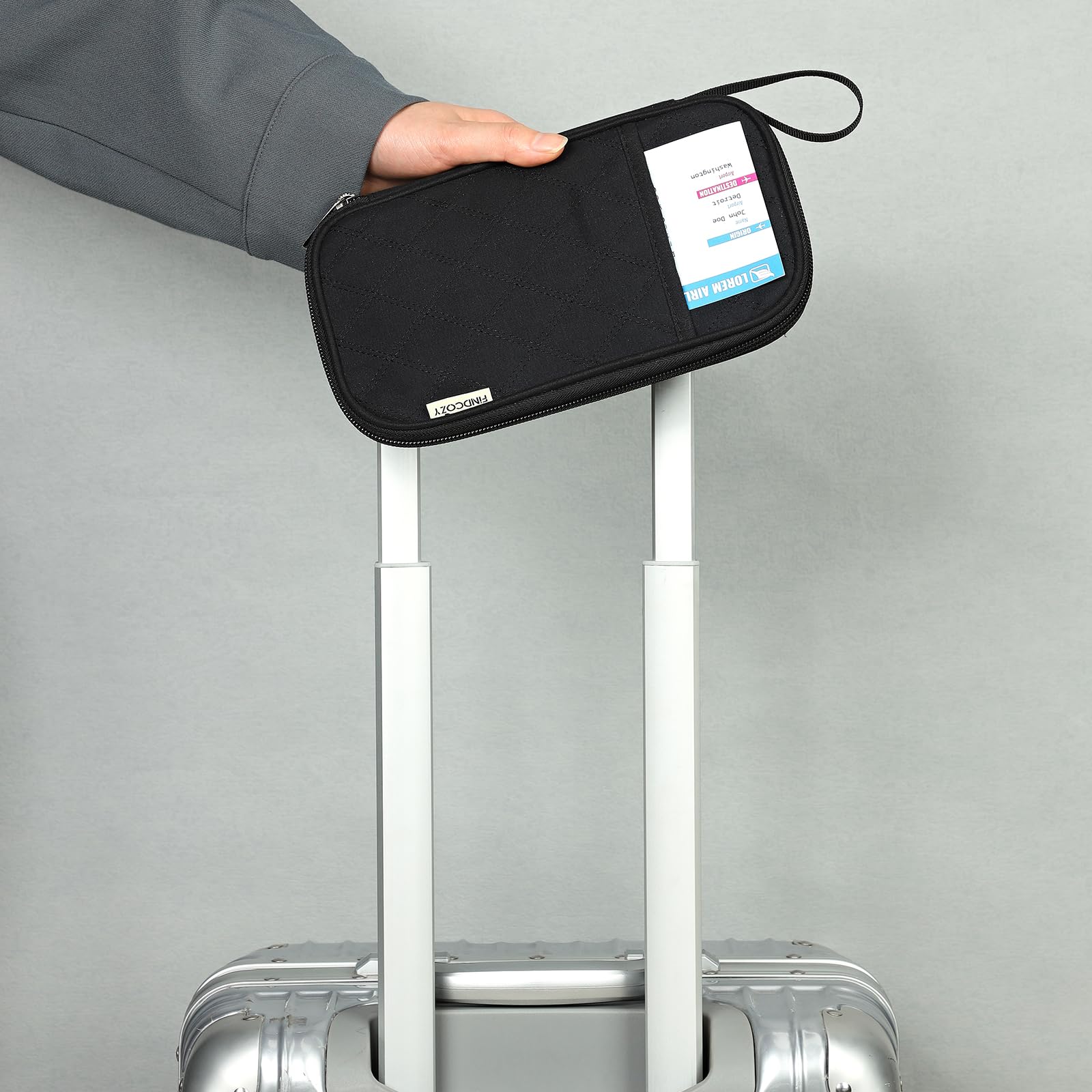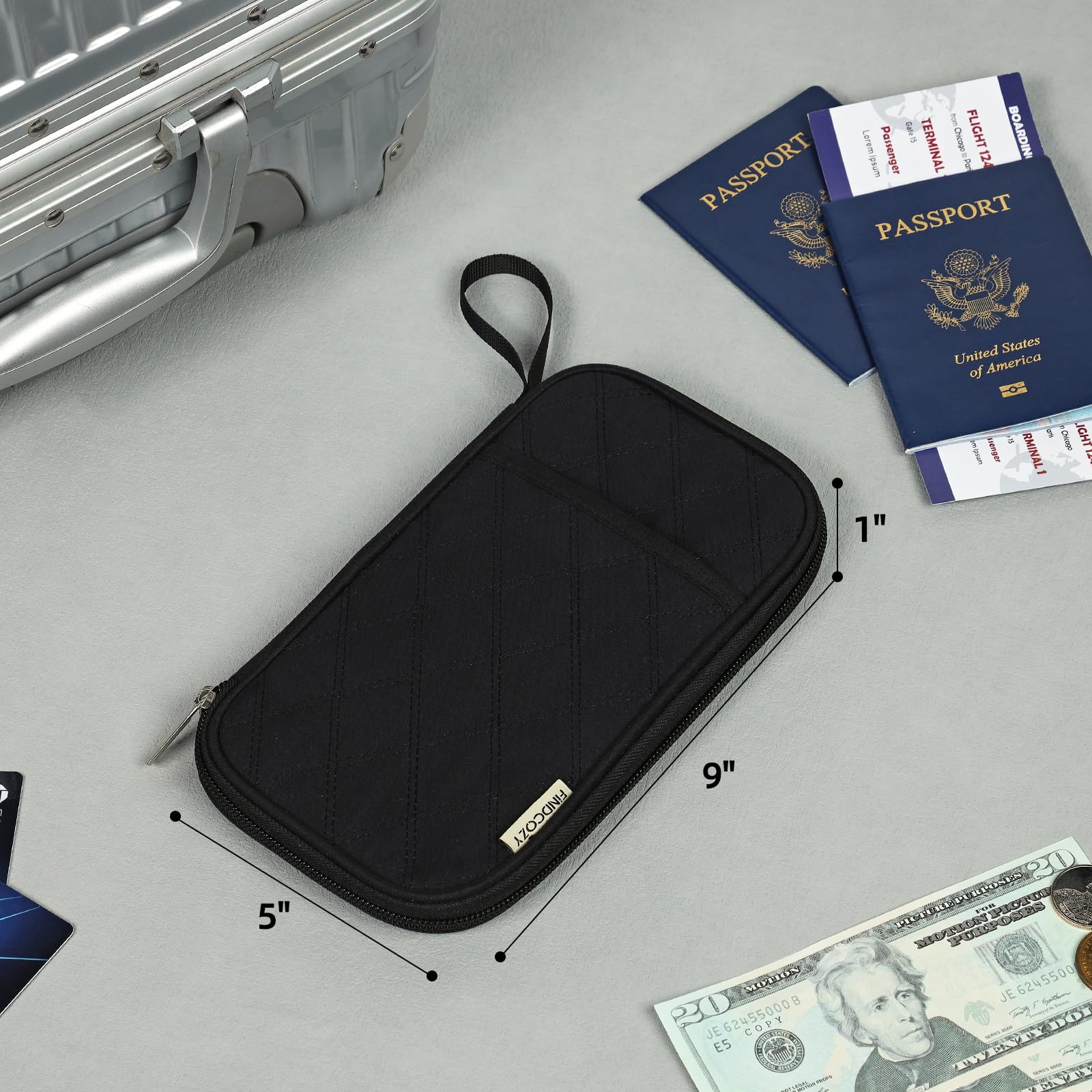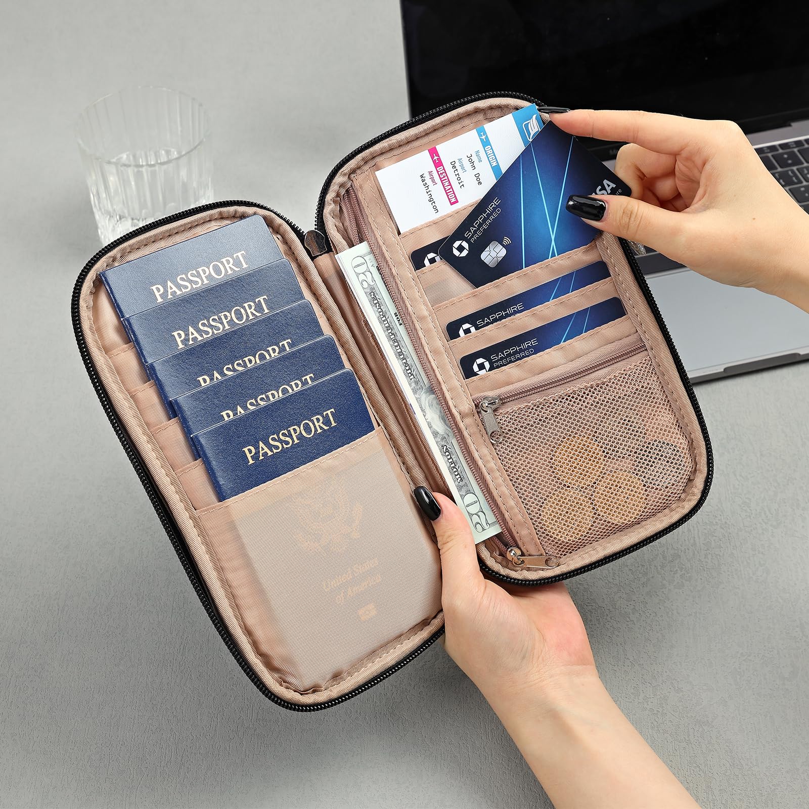 FINDCOZY Travel Portable Passport Holder Family, Women Document Organizer Wallet with Multiple Pockets for Credit Cards, Boarding Pass and Coins, Black