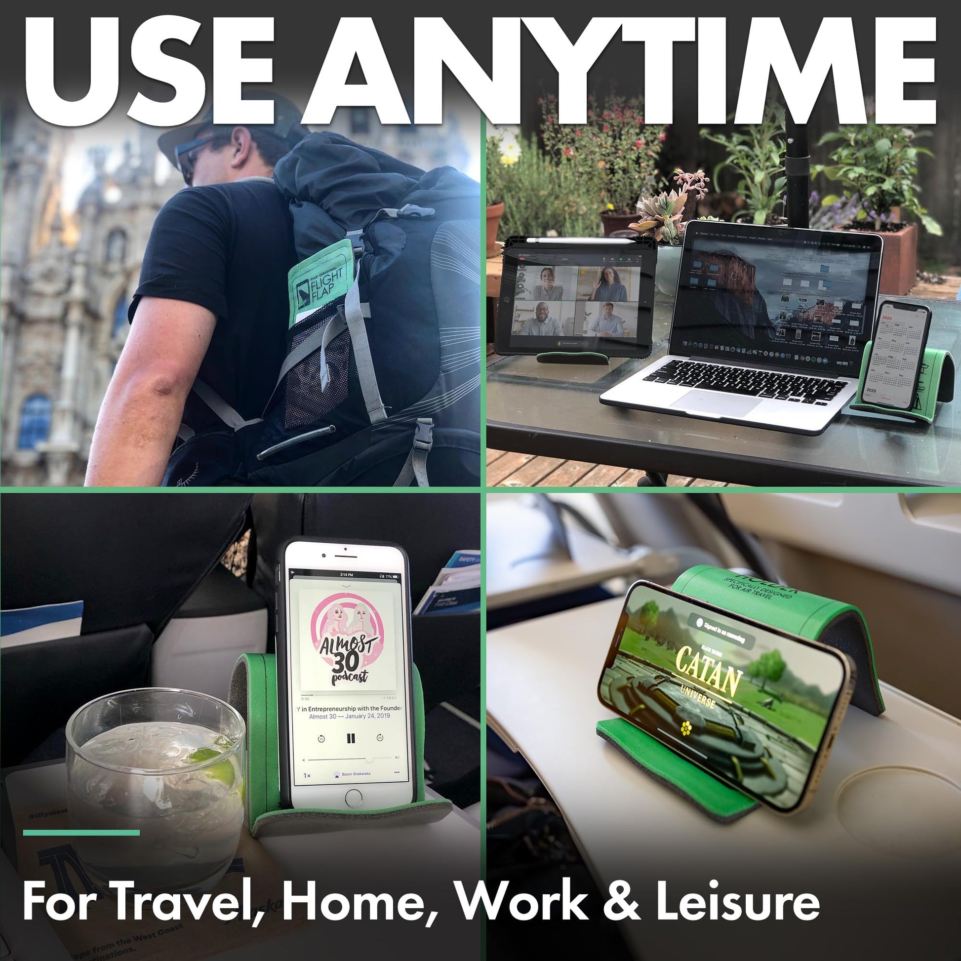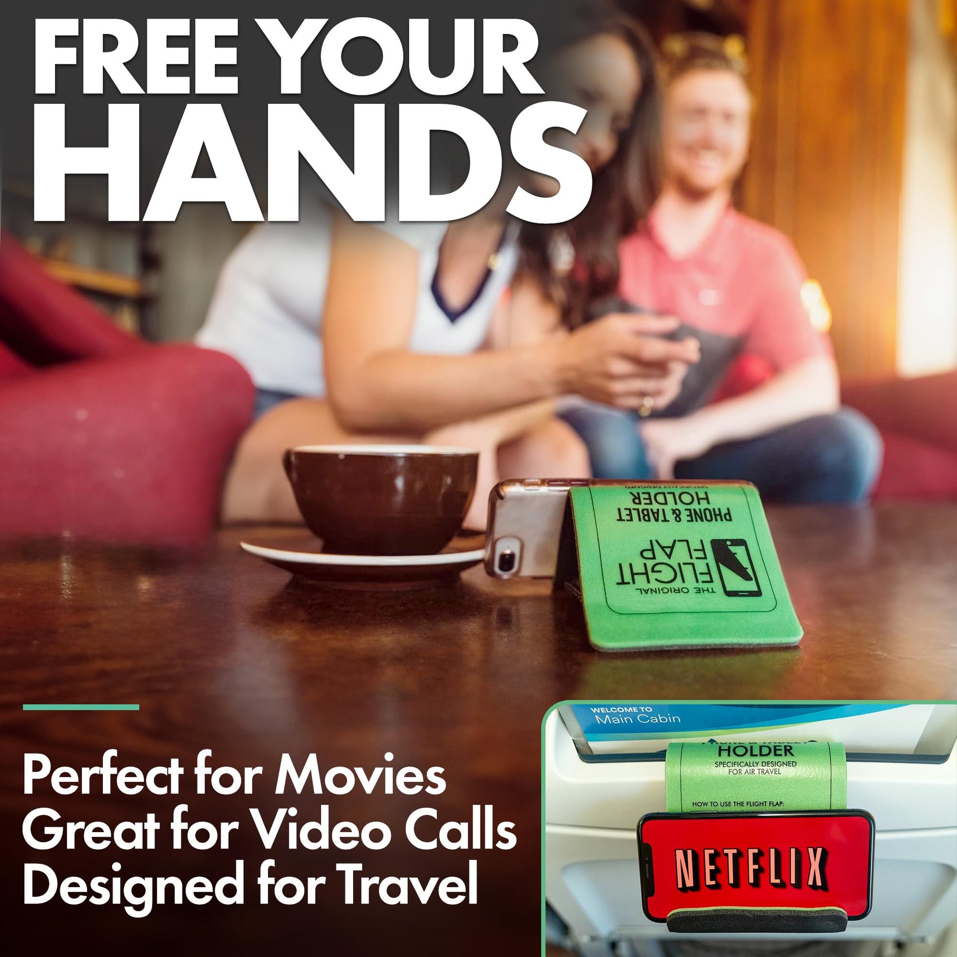 - USE FOR TRAVEL, WORK & LEISURE – Great for watching movies, entertaining kids, streaming workouts, hosting a zoom video call, or cooking with recipes on your phone. Use the FLIGHT FLAP cellphone stand anywhere to grip your device and view your content comfortably. Attaches to most airline seat backs and tray tables. During car rides, attach behind the headrest and stream movies for kids. Properly positions your phone or tablet to host zoom meetings.