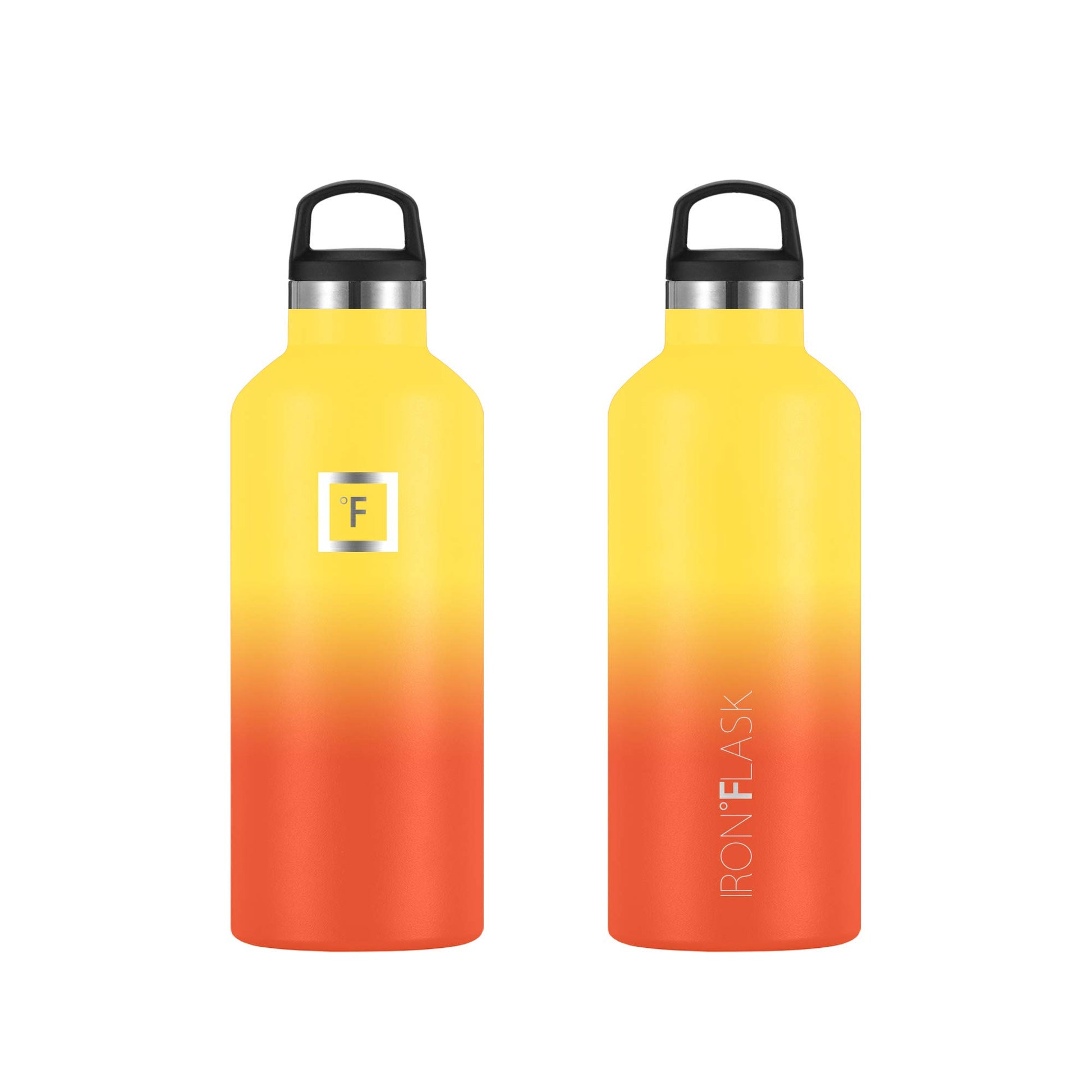 IRON °FLASK Sports Water Bottle - 3 Lids (Narrow Spout Lid) Leak Proof Vacuum Insulated Stainless Steel - Hot & Cold Double Walled Insulated Thermos, Durable Metal Canteen - Fire, 32 Oz