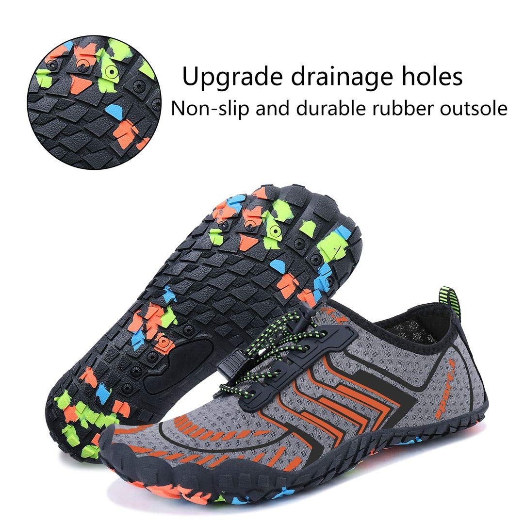 - Special Five Toes Design: Thickening Wide Toe Parts can keep your feet from being scratched by sharp objects such as shells or stones when doing water sports. Great lightweight barefoot aqua shoes for men and women.