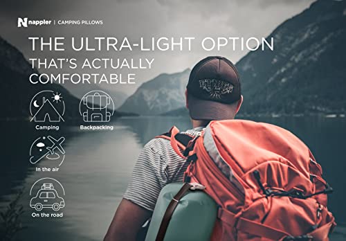 - ✅EASY TO CARRY AND KEEP CLEAN: Nappler camping & travel pillow is very lightweight and comes with a carry case to keep it clean. The snap loop in the back of the pillow makes it easy to clip it to your luggage or hang it in the car.