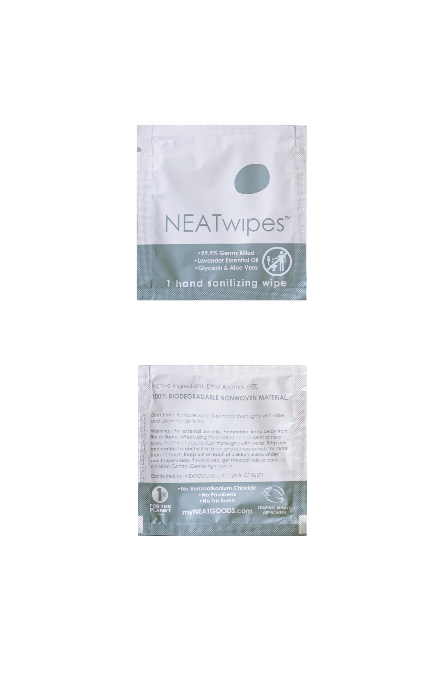 - DISPOSABLE TRAVEL SIZE WIPES: NEATwipes portable 24-count individually wrapped wipes come in a resealable bag and are perfect for on-the-go. Grab a handful for your pocket, purse, backpack or anytime you are on the go. Great for sharing with friends and customers.