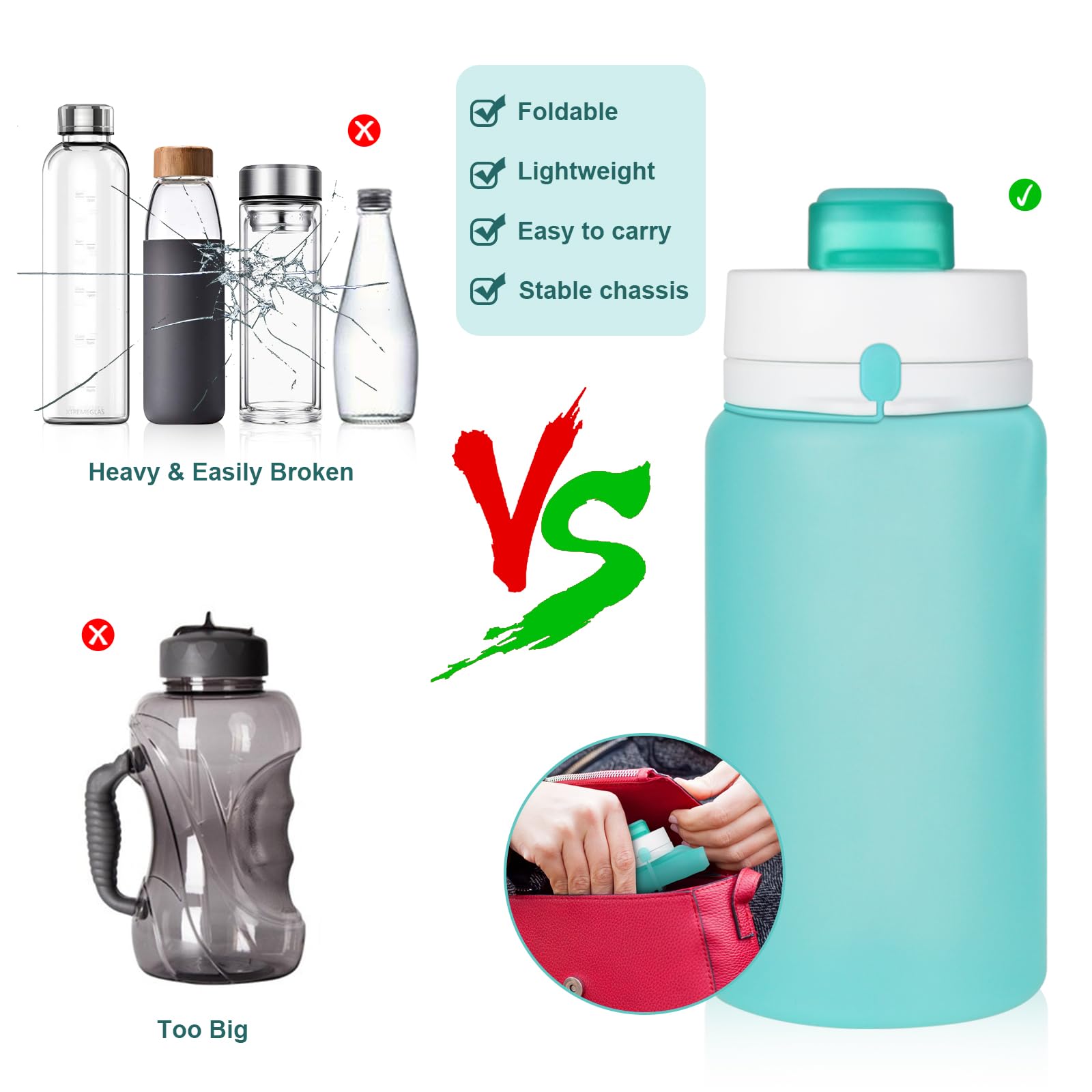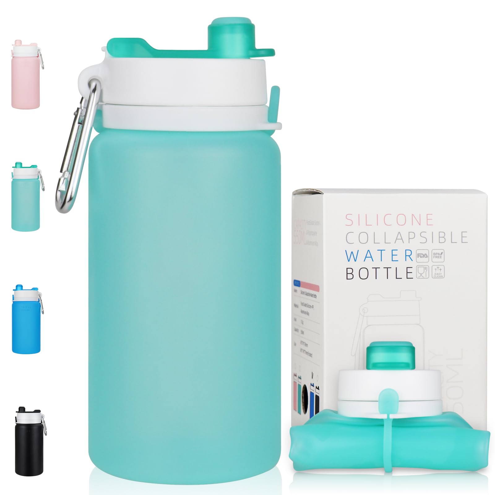 - ššš š šš ššššš: The collapsible water bottle is made of food-grade silicone and food-grade plastic lid, BPA-free, odorless.