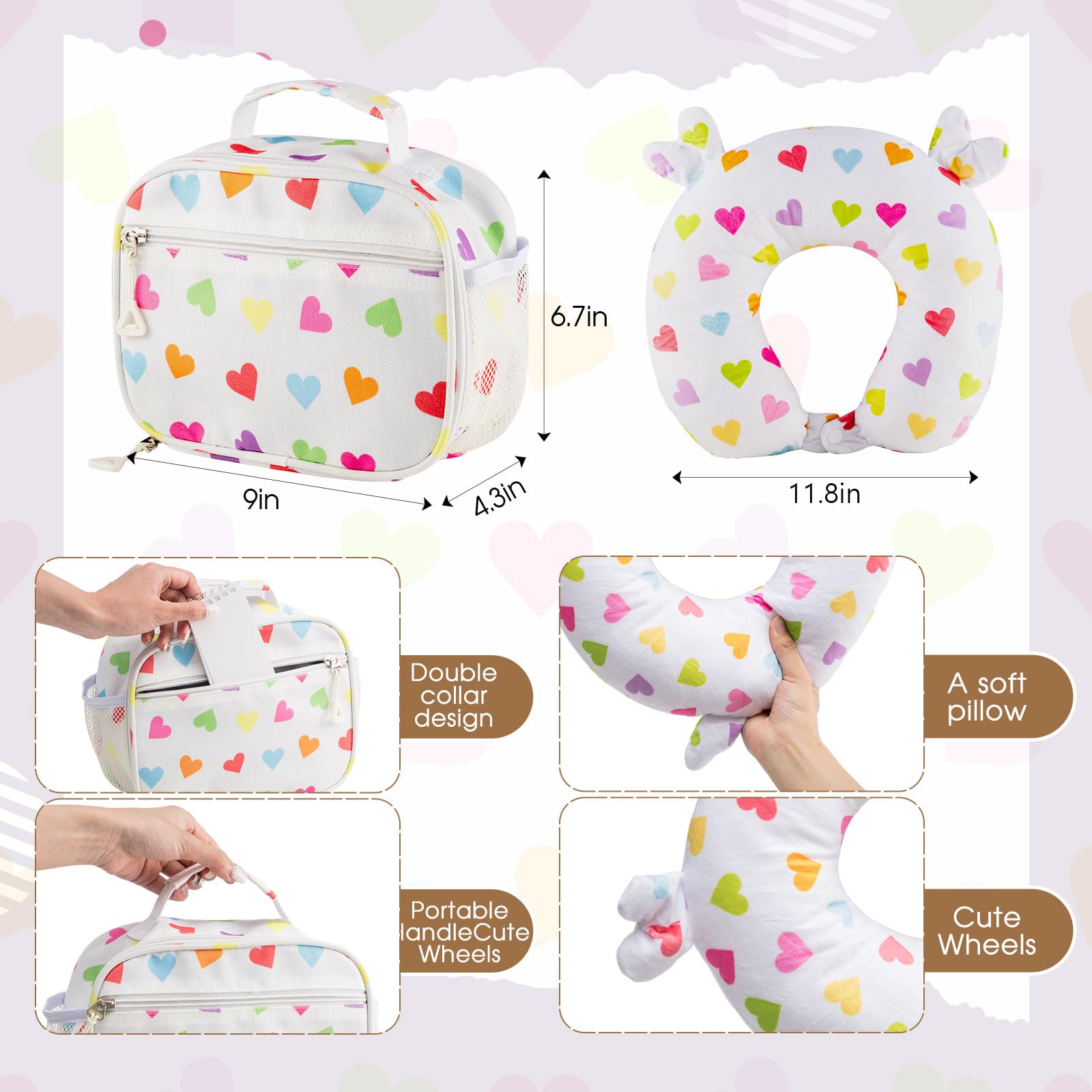 - 6 Pieces Children's Travel Set: there is 1 luggage, 1 luggage tag, 1 canvas backpack, 1 canvas lunch bag, 1 neck pillow and 1 pen pouch, providing ample space for all your child's travel essentials.Please note: We have improved the zipper problem with stronger and more durable zippers. If you encounter product problems, please give us feedback and we will patiently solve your problem.