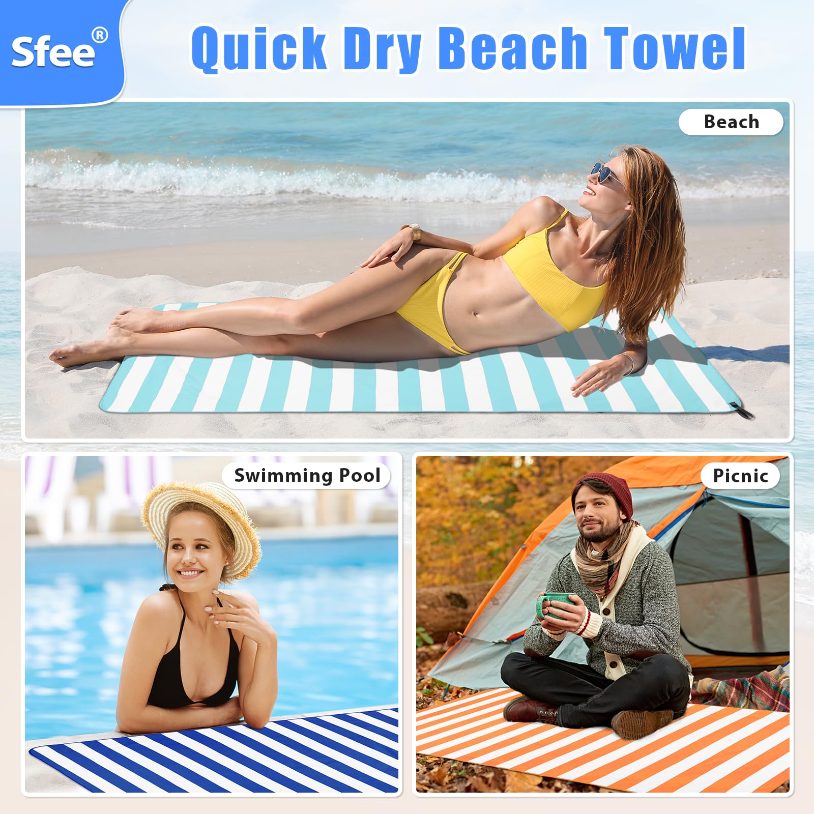 Sfee 2 Pack Microfiber Oversized Beach Towel, Quick Dry Towel Travel Towel Camping Towel Super Absorbent Compact Lightweight Sports Towel Gym Towel for Beach,Gym, Hiking, Pool, Backpacking, Bath, Yoga
