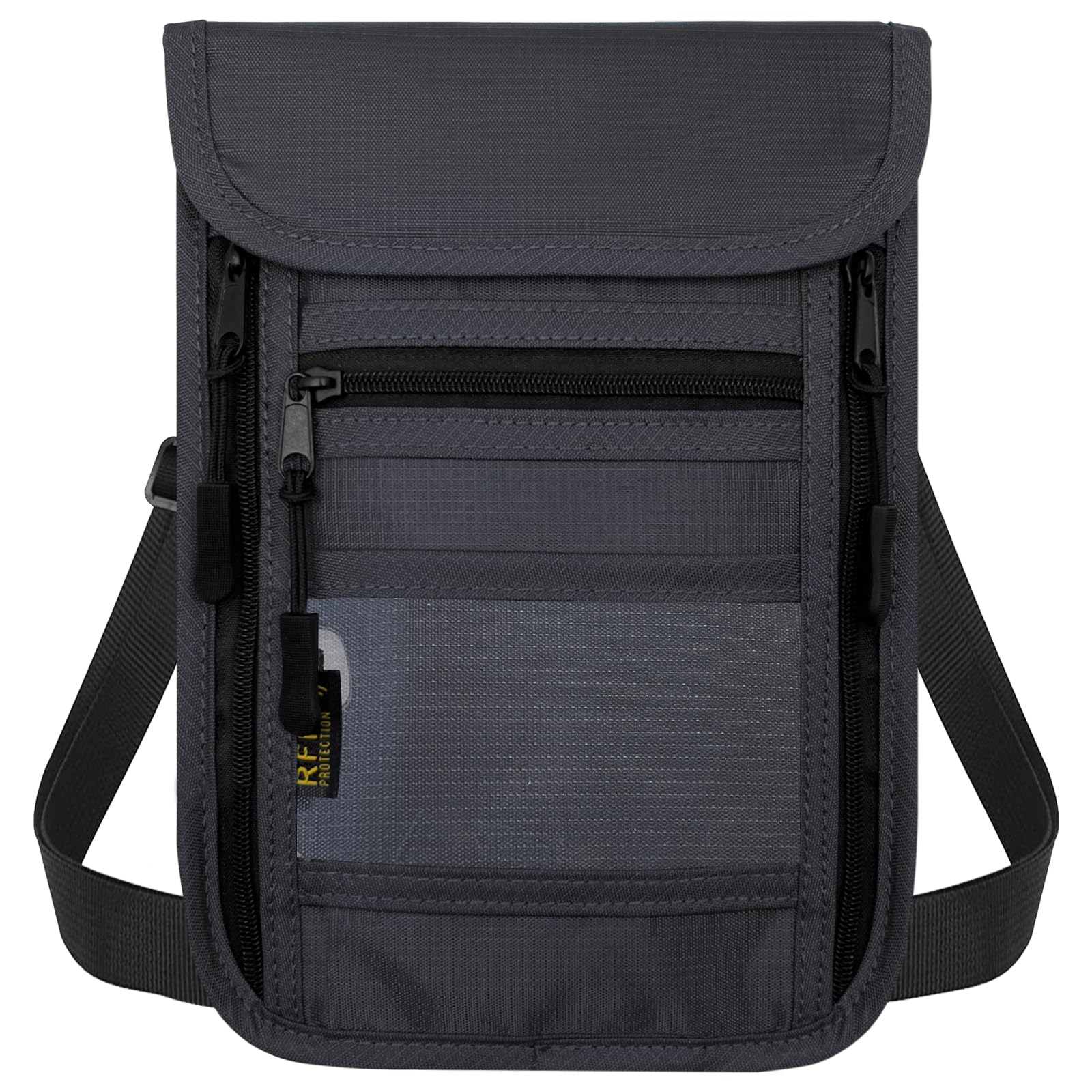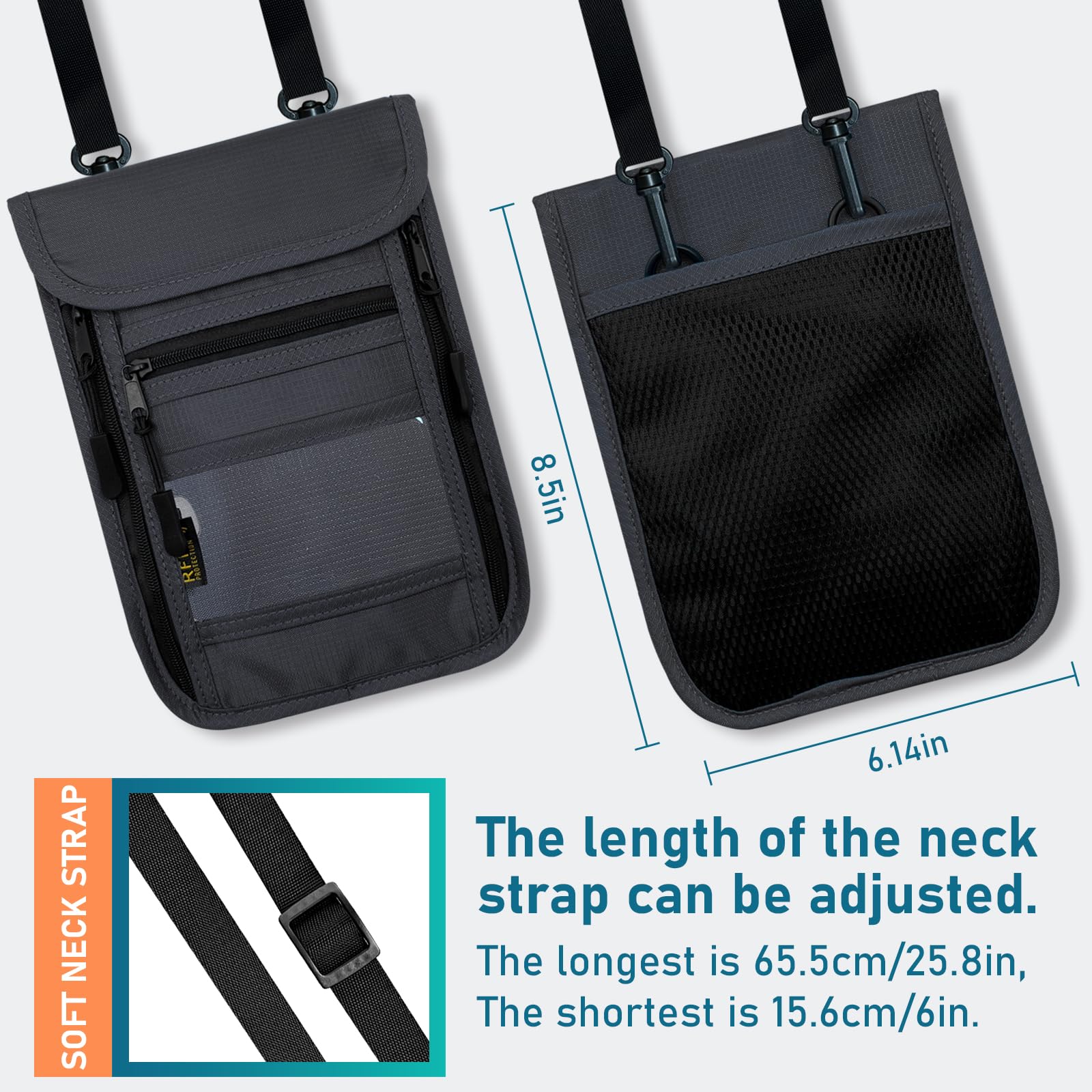 sundee Travel Neck Wallet with Double Zippers, RFID Blocking Passport Holder with Adjustable Neck Strap to Keep Cash, Credit Cards and Travel Documents Safe - Dark Gray