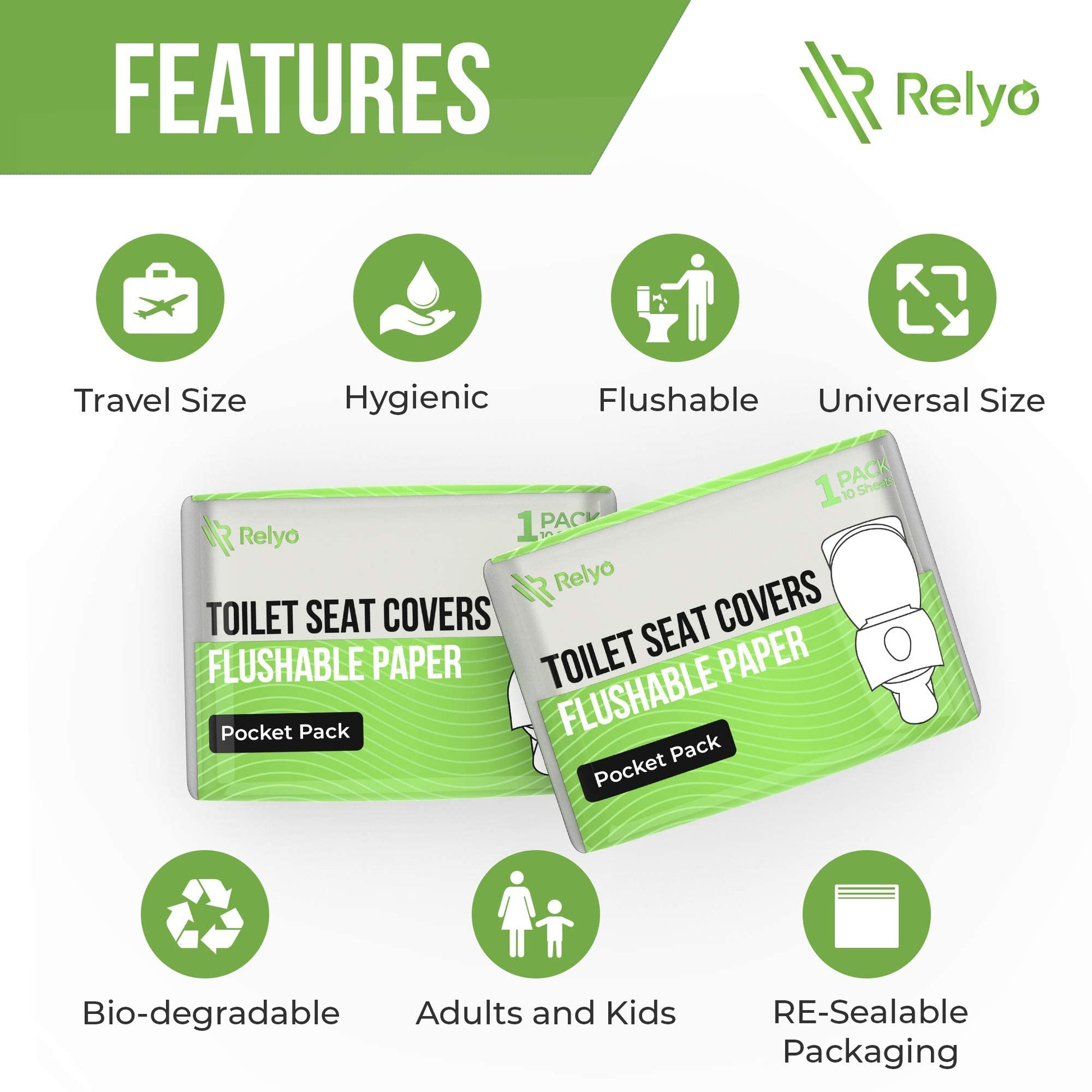 - ✔️ NO MORE STRESS when you need to use a public restroom. Our 50 PACK of Flushable Toilet Seat Covers will come in handy when needing to use a public restroom. Our seat covers are essential for safety and peace of mind.