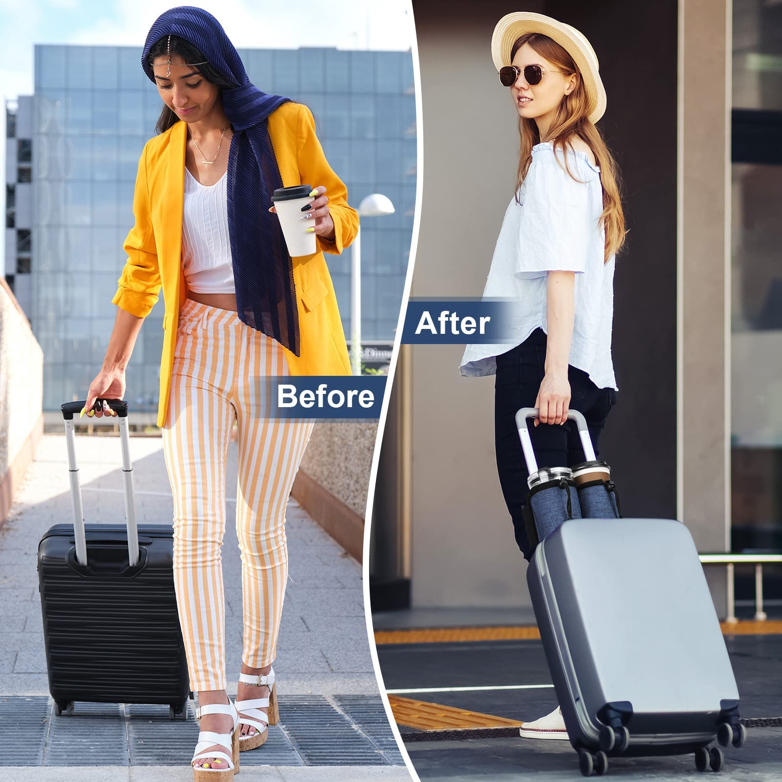 - 【CONVENIENT & FLEXIBLE】-- Double-sided magic tape to fit more suitcase handles, wrap suitcase drink holder around the handles to fit your luggage handles, super easy to put on and off and folds down nicely to fit in a side pocket on a backpack.