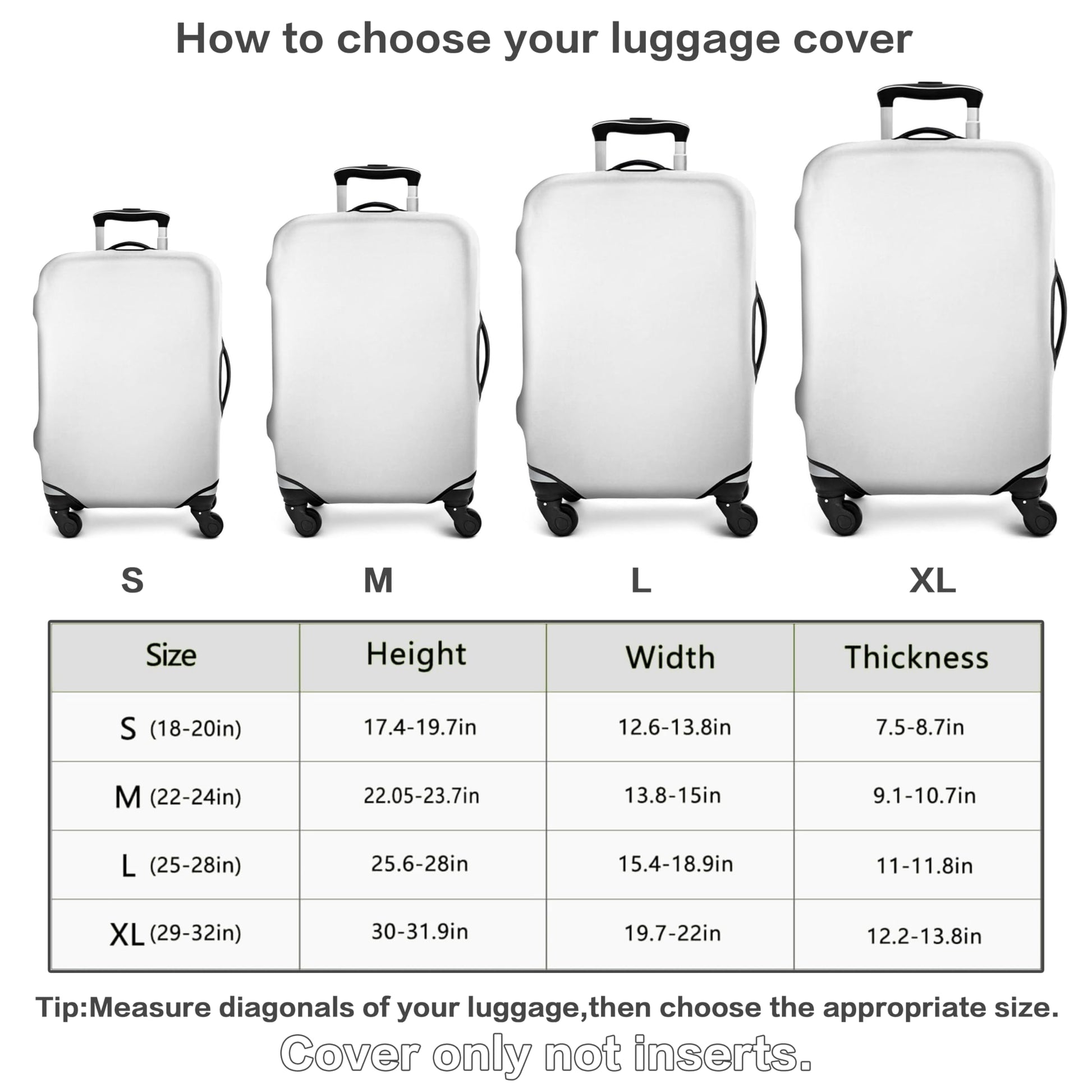 - ✈ Various Sizes: There are 4 sizes available to fit almost any luggage. S: Fits 18-20 inch luggage, M: Fits 22-24 inch luggage, L: Fits 25-28 inch luggage, XL: Fits 29-32 inch luggage. Please refer to the luggage size information and measure the height, width, and depth of the suitcase luggage.