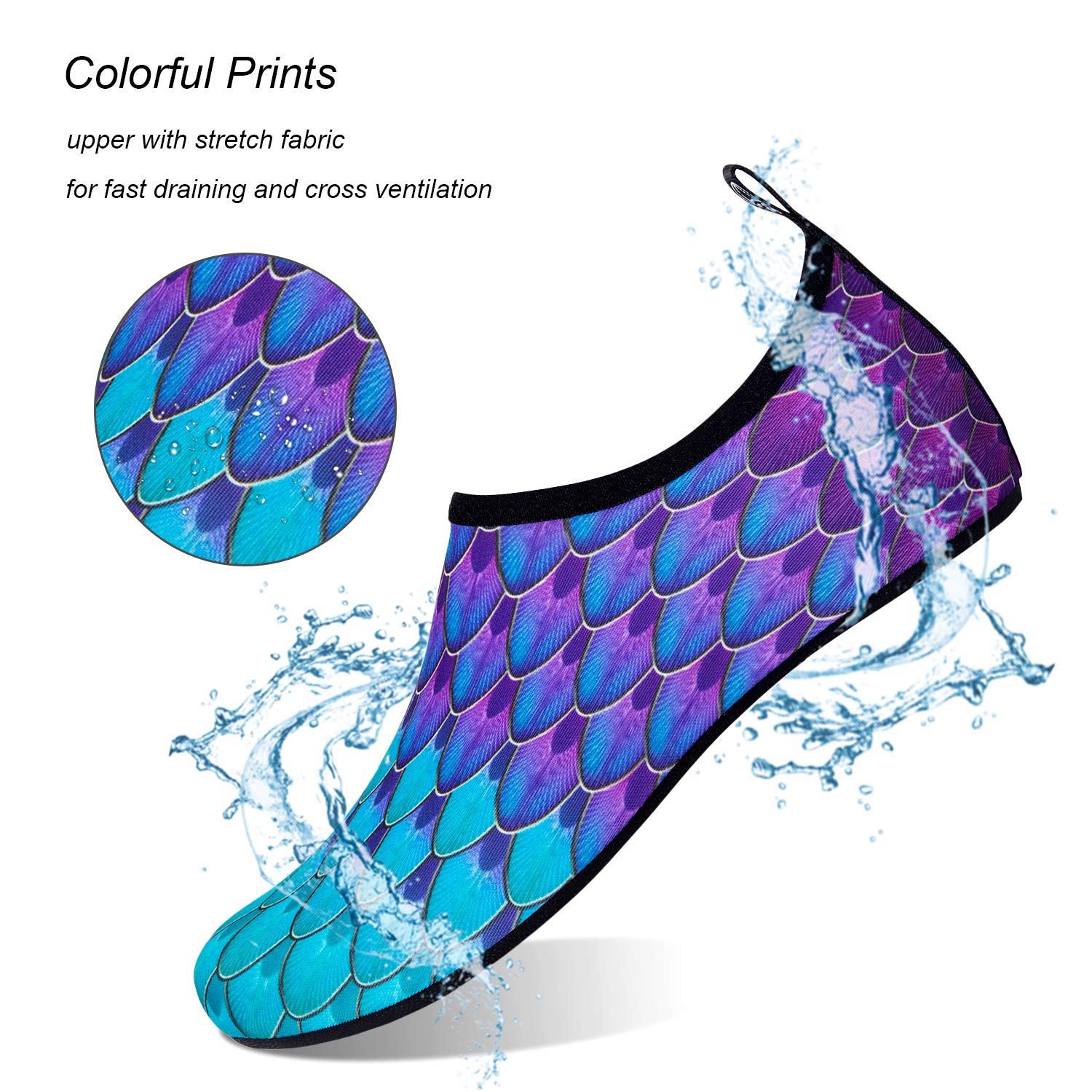 WateLves Water Shoes for Womens Mens Barefoot Quick-Dry Aqua Socks for Beach Swim Surf Yoga Exercise New Translucent Color Soles (Fishscale-Bluegreen, 34/35)