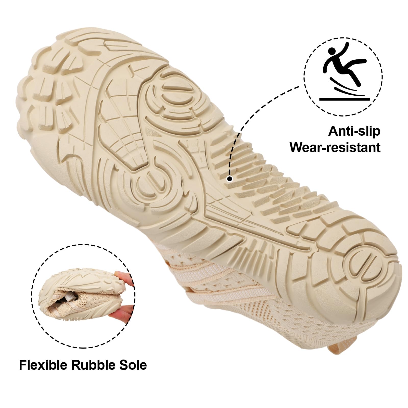 XIHALOOK Water Swim Shoes for Women Athletic Hiking Walking Shoes Aqua Barefoot for River Rafting Surfing Beige, 7.5 Women/6 Men