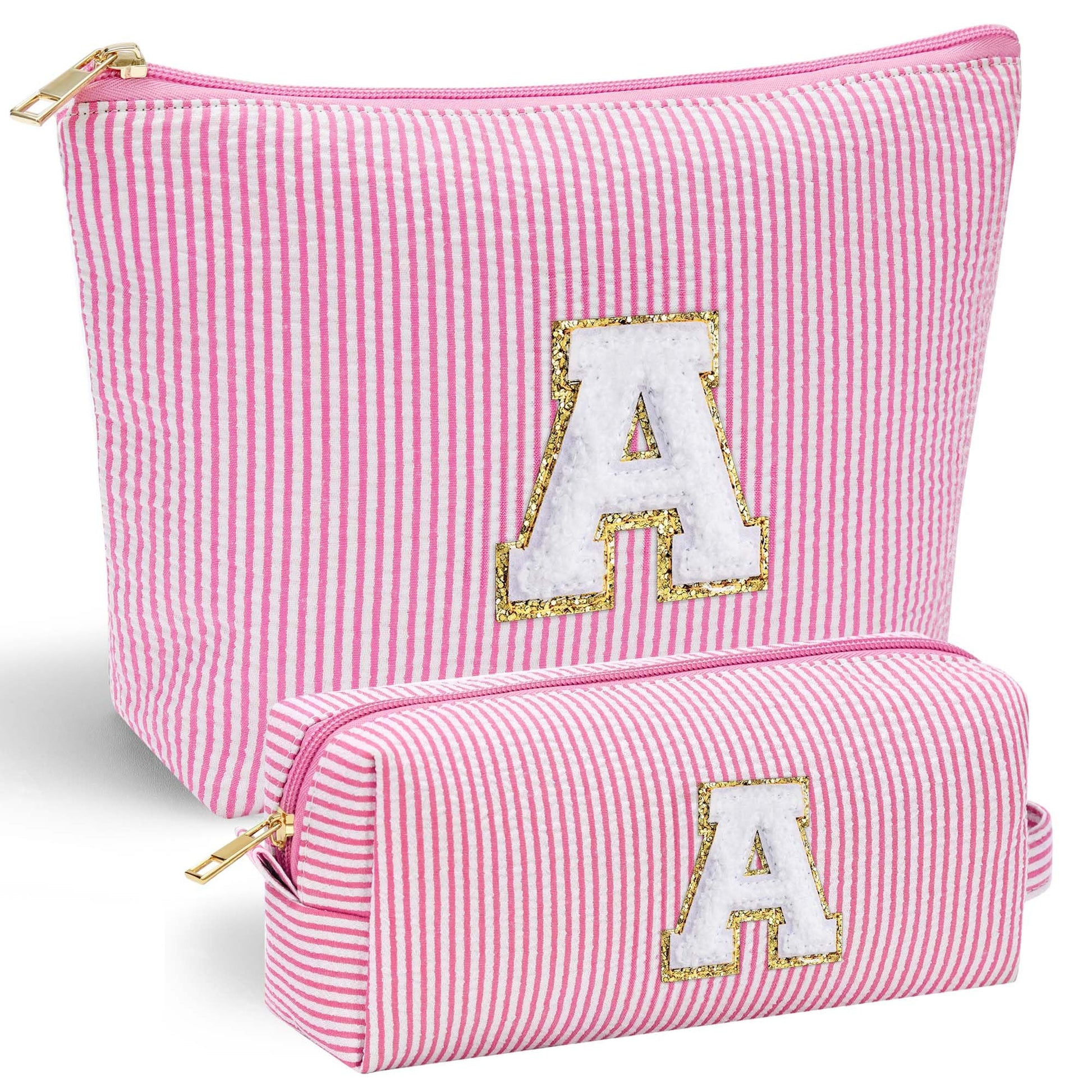 YOOLIFE Graduation Gifts Personalized Initial Cute Pink Cosmetic Makeup Bag Make Up Bag Travel Toiletry Bag for Her Mom Girlfriend Wife Teacher Birthday Gifts for Women Skincare for Girls 10-12 A
